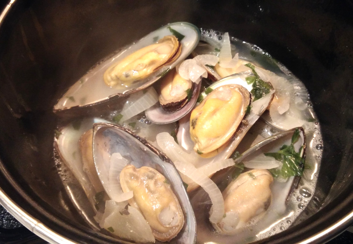 Les moules de Bouzigues ou de méditerranée ne se trouvent pas en Amérique du Nord et pour éviter les moules « fraîches » qui ont séjourné trop longtemps, à mon avis, sur les comptoirs des magasins, la seule solution que j’ai trouvée pour rester dans la tradition des coquillages « Les moules vertes de Nouvelle-Zélande », riches en oméga 3, en glycosaminoglycanes et en sulfate de chondroïtine…