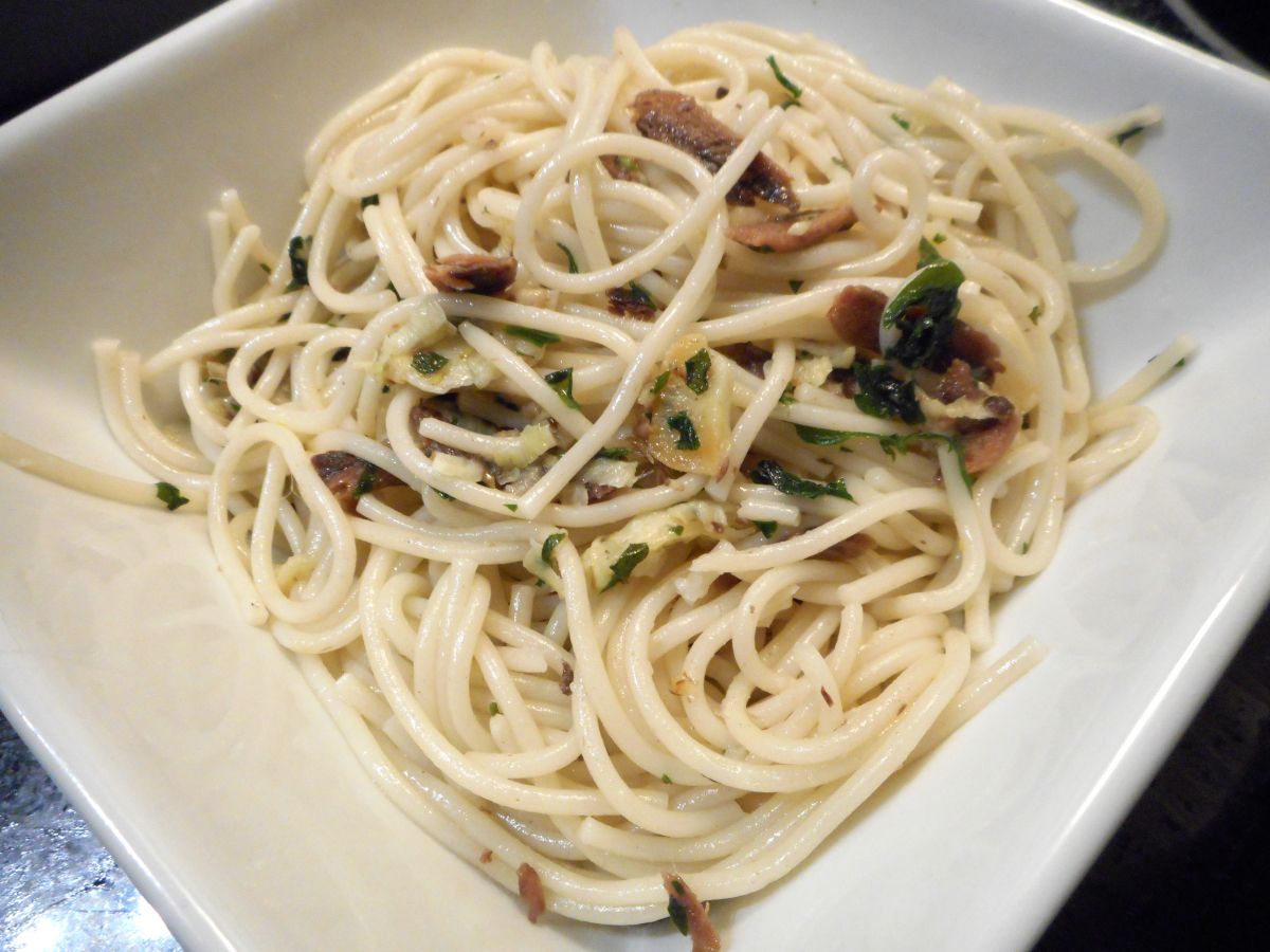 - Mettre un bout d’anchois sur chaque morceau de pâtes