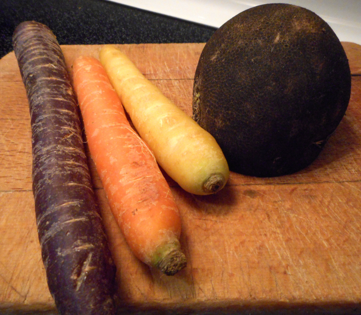 3 variétés de carottes, radis noir